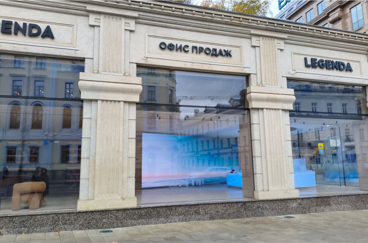 Компания Future Vision изготовила и установила современный светодиодный экран для офиса продаж девелопера LEGENDA в городе Москва. Светодиодная стена размером 7 040 х 2 880 мм стала ярким технологичным акцентом всего помещения. С помощью LED стены застройщик сможет презентовать жилые комплексы и другие решения компании более креативно, эффективно и динамично в сравнении со статичными изображениями. Частота обновления 3840 Гц и малый шаг пикселя Р1.25 обеспечивают повышенное качество изображения с минимального расстояния.